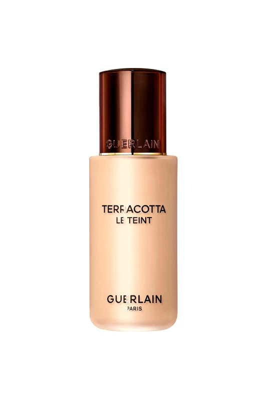 Με το Terracotta Le Teint, o Οίκος Guerlain καθορίζει τα περιγράμματα μιας επιδερμίδας νέας γενιάς: ένα υγρό foundation, με σύνθεση με 95% φυσικά συστατικά¹. Συνδυάζει την ελαφριά αίσθηση και τη λάμψη μιας πούδρας με την τελειότητα ενός foundation. Η 24ωρη φόρμουλα του χωρίς μεταφορά εγγυάται μια όμορφη υγιή λάμψη, σαν να επιστρέφατε από μία απόδραση στην ύπαιθρο. Αυτή η απίστευτα λεπτή, εξαιρετικά ελαφριά υφή προσφέρει μια αξέχαστη αίσθηση. Η αέρινη σύνθεσή του που βασίζεται σε χρωστικές ουσίες φυσικής προέλευσης και είναι εμποτισμένη με φυσικό έλαιο αργκάν ενώνεται με το δέρμα και είναι απίστευτα ελαφριά στην εφαρμογή, προσφέροντας τέλεια, προσαρμοσμένη στις ανάγκες σας, εξαιρετικά δομήσιμη, μεσαία έως υψηλή κάλυψη. Φορώντας Terracotta Le Teint, το δέρμα αναδεικνύεται όμορφα και λαμπερό. Οι τελειοποιητικές πούδρες που ενσωματώνονται στη σύνθεση δημιουργούν αμέσως ένα άψογο αλλά απίστευτα φυσικό φωτεινό ματ φινίρισμα. Οι φωτοσυλλέκτες εξασφαλίζουν μια φρέσκια και λαμπερή επιδερμίδα – τη διάσημη όμορφη υγιή λάμψη. Το Terracotta Le Teint διατίθεται σε μια ευρεία γκάμα αποχρώσεων: 16 εντάσεις και τρεις αποχρώσεις (ουδέτερος, ψυχρός, ζεστός), καλύπτοντας όλο το φάσμα της επιδερμίδας. Η εξαιρετική του φόρμουλα περιέχει αυτοπροσαρμόσιμο shimmer – Gemtone, που του επιτρέπει να προσαρμόζεται σε όλους τους τόνους δέρματος. ¹βάσει του πρότυπου ISO 16128. Το υπόλοιπο 5% συμβάλλει στην ακεραιότητα και την αίσθηση του προϊόντος. ²Οργανική δοκιμή και κλινική αξιολόγηση σε 27 καυκάσιες γυναίκες.