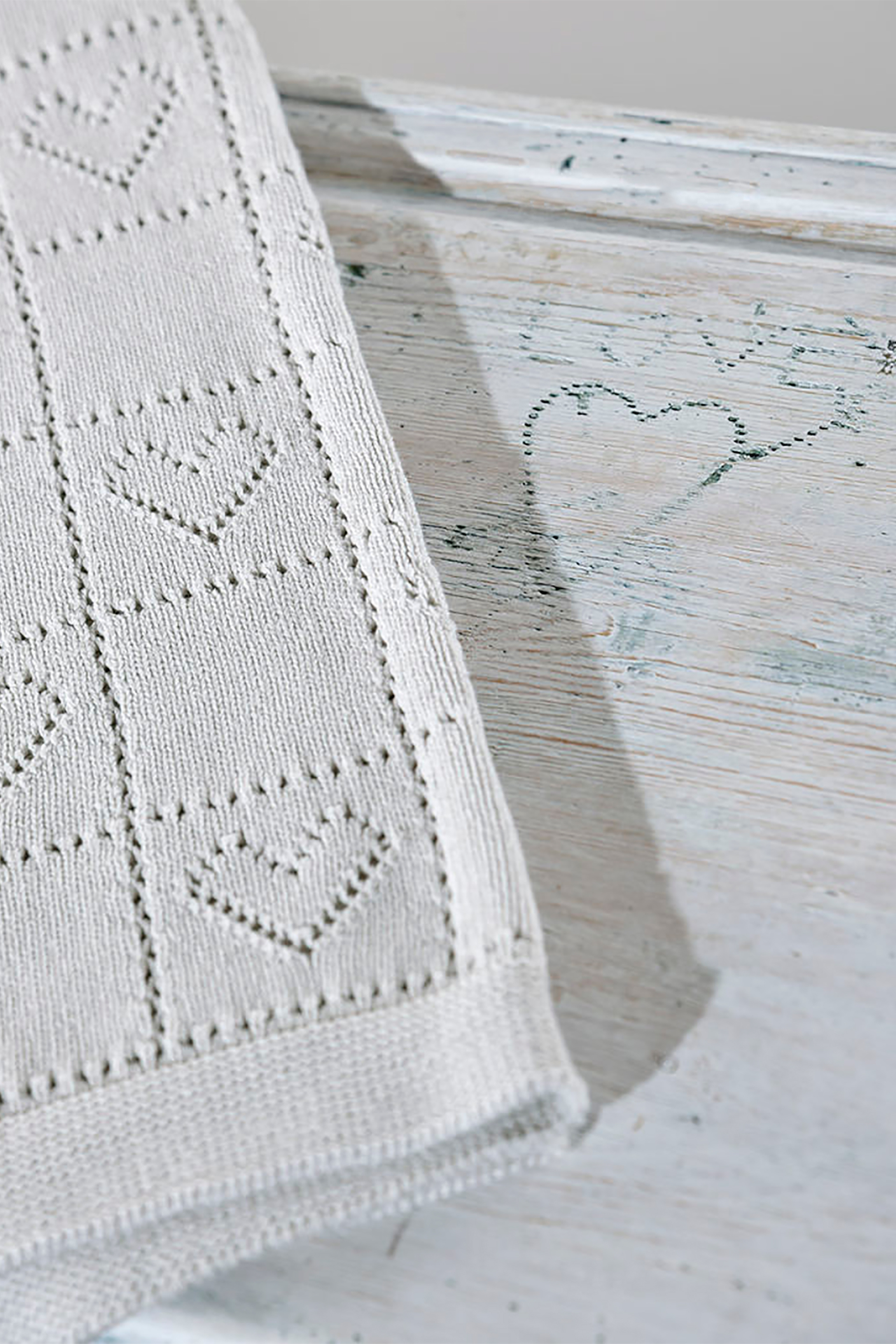 Βρεφική κουβέρτα λίκνου. Πλεκτή. Διάτρητο σχέδιο. Διαστάσεις: 75 x 105 cm. 100% βαμβάκι