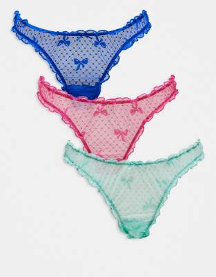 Lingerie & Nightwear by ASOS DESIGN Who says underwear has to be basic? Pack of three Bow embroidery Low rise Elasticated waist Ruffle trims Thong cut