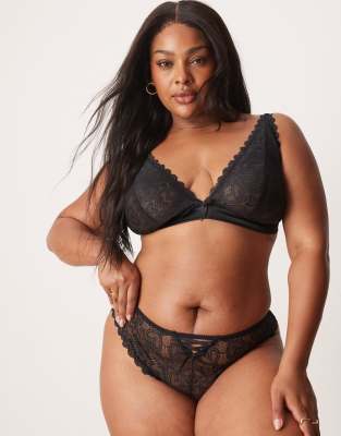 Lingerie & Nightwear by ASOS Curve Heart design Mid rise Elasticated waist Lace-up detail Brazilian cut