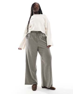 Trousers & Leggings by ASOS Curve For days when denim won't do Dogtooth check Mid rise Belt loops Waist tie Side pockets Wide leg