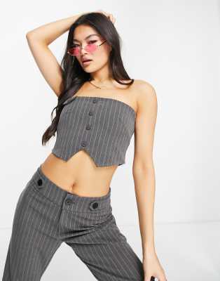 Top by The Kript Part of a co-ord set Trousers sold separately Pinstripe design Bandeau neck Button placket Cropped length Slim fit