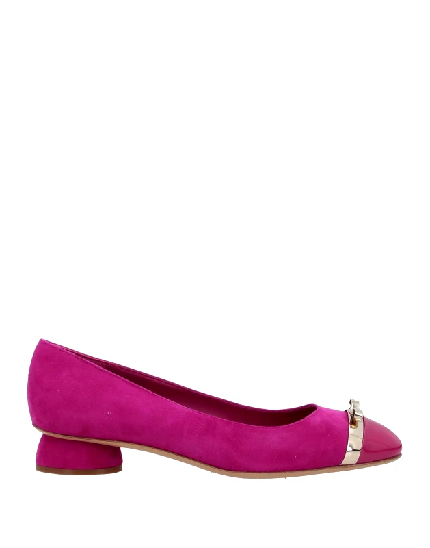 FERRAGAMO ΠΑΠΟΥΤΣΙΑ ΜπαλαρίνεςΜπαλαρίνες Σουέντ Λουστρίνι Μεταλλική εμφάνιση Μονόχρωμο με απλικέ στοιχεία Λογότυπο του brand Εσωτερική επένδυση από δέρμα Στρογγυλή μύτη Γεωμετρικό τακούνι Επενδυμένο τακούνι Δερμάτινη σόλα Περιέχει μέρη από μη υφαντικές ύλες Ζωικής προέλευσηςΔέρμα μοσχαριού