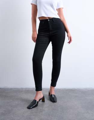 Jeans by Topshop Hourglass The Jamie jeans are cut with a high-rise waist more room around the hips and a skinny leg that finishes at the ankle. Featuring belt loops a zip fly and five functional pockets this style is crafted from denim with power stretch technology in a black wash.