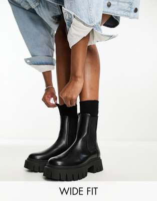 Shoes by ASOS DESIGN Wide Fit Time for a reboot Pull tab for easy entry Elasticated inserts Round toe Chunky sole Lugged tread