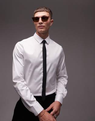 Shirts by Topman This shirt is crafted from sateen a silky fabric with a glossy surface sheen. It features a spread collar button placket long sleeves with buttoned cuffs and is cut to a slim fit.