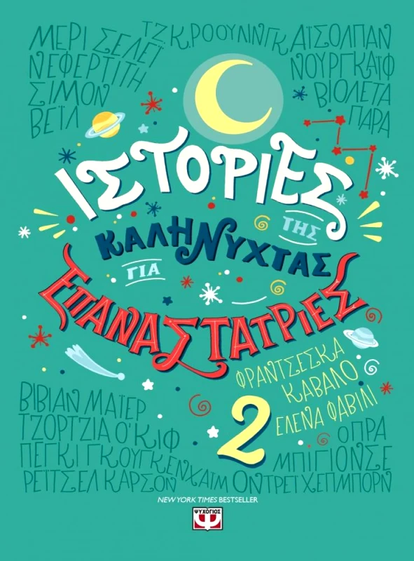 «Αυτό το καταπληκτικό βιβλίο δείχνει στα κορίτσια ότι μπορούν να γίνουν ό,τι θέλουν». Μελίντα Γκέιτς Η συνέχεια του ευπώλητου, σύμφωνα με τις λίστες των New York Times, βιβλίου που ενέπνευσε κορίτσια σε όλο τον κόσμο να κάνουν μεγαλύτερα όνειρα, να βάζουν υψηλότερους στόχους και να αγωνίζονται σκληρότερα. Το Ιστορίες της καληνύχτας για επαναστάτριες 2 είναι μια εξ ολοκλήρου νέα συλλογή με εκατό ιστορίες της καληνύχτας που τιμούν εξαιρετικές γυναίκες, από τη Νεφερτίτη μέχρι την Μπιγιονσέ και από τη Ρόζαλιντ Φράνκλιν μέχρι την Τζ. Κ. Ρόουλινγκ. Βασίλισσες και ακτιβίστριες, μπαλαρίνες και δικηγόροι, πειρατίνες και προγραμματίστριες, αστροναύτισσες και εφευρέτριες – μια καταπληκτική καταγραφή και μια υπενθύμιση πως είναι τελικά εφικτό να πραγματοποιηθούν όλοι οι στόχοι που θέτει ο καθένας.