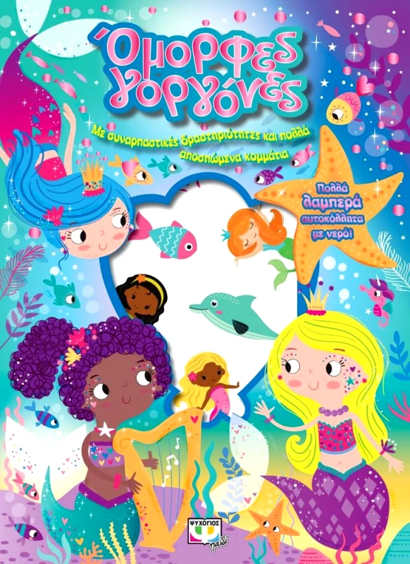 Βυθίσου σε έναν κόσμο γεμάτο μαγικές δραστηριότητες! Βοήθησε τις γοργόνες να επιστρέψουν στο σπίτι τους, ζωγράφισε το τέλειο παλάτι και φτιάξε υπέροχες κατασκευές με τα αποσπώμενα κομμάτια. Μέσα στο βιβλίο θα βρεις επίσης πολλά λαμπερά αυτοκόλλητα με νερό, τα οποία µπορείς να κολλήσεις όπου θέλεις!