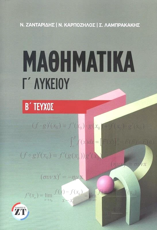 Το βιβλίο αυτό έχει γραφτεί με σκοπό να βοηθήσει τόσο μαθητές όσο και συναδέλφους στα Μαθηματικά Προσανατολισμού της Γ΄ Λυκείου και είναι το δεύτερο τεύχος της σειράς. Βιβλία Μαθηματικών γραμμένα από έμπειρους μαθηματικούς με πολυετή ενασχόληση με τη συγγραφή βοηθημάτων και τη διδασκαλία σε φροντιστήρια μέσης εκπαίδευσης. Περιέχει ασκήσεις διαβαθμισμένης δυσκολίας για κάθε επίπεδο μαθητή και καθηγητή. Γίνεται εμβάθυνση σε ασκήσεις του σχολικού εγχειριδίου με σκοπό τη στήριξή του και τη μέγιστη αξιοποίησή του. Η δομή του συγκεκριμένου βιβλίου εξυπηρετεί τον αναγνώστη-μαθητή στη σωστή κατανομή του χρόνου του για τη μελέτη της θεωρίας και την επίλυση των ασκήσεων. Μαθηματικά Γ΄Λυκείου Τεύχος Β