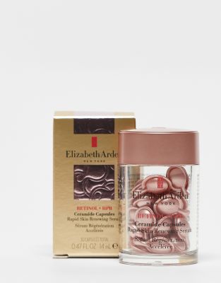 Face + Body by Elizabeth Arden Step-up your skincare Renewing serum capsules Designed to leave skin looking radiant while reducing the appearance of fine lines and pores Aims to improve skin texture tone and firmness Formulated with pure retinol high-performance retinol ceramides skin-firming peptides and soothing botanicals Product is non-returnable for hygiene reasons
