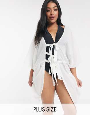 Plus-size beach cover-up by Brave Soul Easy beachy vibes Kimono sleeves Tie front Regular fit True to size