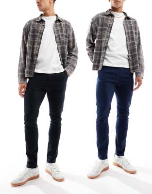 Trousers & Chinos by ASOS DESIGN Pack of two Regular rise Belt loops Functional pockets Skinny fit