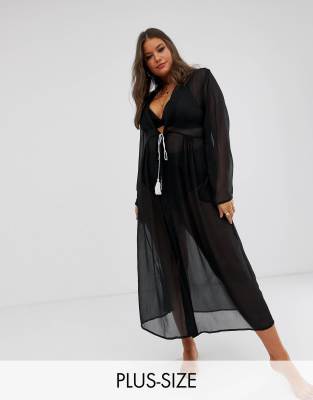 Plus-size beach dress by Brave Soul For that holiday you have to go to Sheer finish Tie front Tassel trim Regular fit Just select your usual size