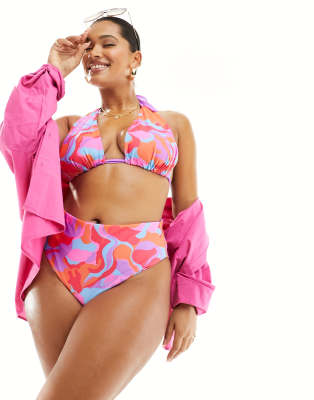 Swimwear & Beachwear by ASOS Curve A sunlounger serve Reversible design High rise Brief cut