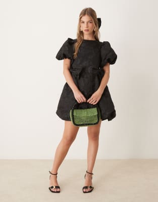 Dresses by sister jane Out of screenshots into basket Round neck Puff sleeves Bow details Regular fit