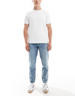 Jeans by ASOS DESIGN Call it a denim day Slim tapered fit Cut with more room around the thigh Tapered from the knee to hem Regular rise Belt loops Five pockets