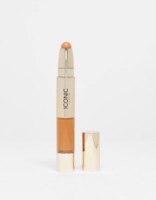 Face + Body by ICONIC LONDON Your new favourite coverage Double-ended design Includes a liquid concealer and brightening crayon Medium-to-full coverage Radiant finish Liquid concealer works to cover blemishes dark circles and areas of pigmentation Crayon helps to lift your complexion with its pearlescent light-reflecting pigment Enriched with anti-inflammatory caffeine to stimulate circulation and reduce redness and puffiness Sodium hyaluronate helps to promote skin elasticity and provide long-lasting hydration Product is non-returnable for hygiene reasons