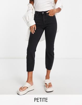 Petite jeans by Vero Moda Petite It's all in the jeans High rise Belt loops Five pockets Raw-cut hem Straight fit
