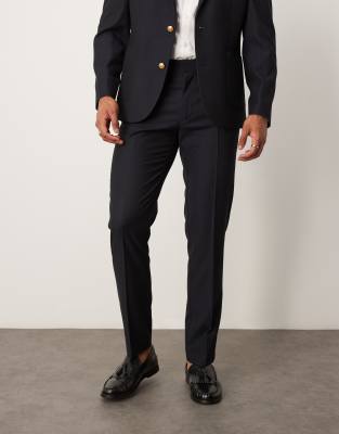Επισκέψου το κατάστημα Asos για να δεις περισσότερες λεπτομέρειες και φωτογραφίες για το ASOS DESIGN slim suit trousers in navy jacquard. Για αγορά του ASOS DESIGN slim suit trousers in navy jacquard πρέπει να επισκεφτείς το κατάστημα Asos.