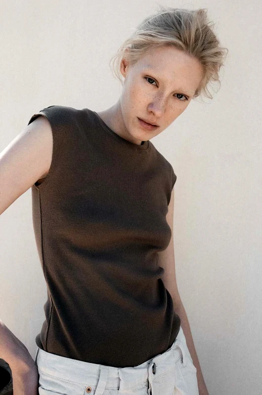 Top από τη συλλογή MUUV. Μοντέλο από ραβδωτό πλεκτό. Βαμβάκι, άνετο υλικό.