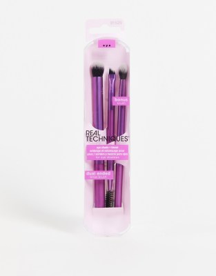 Face + Body by Real Techniques For a strong blend game Set of three Designed for easy two-colour shadow application Ideal for applying shadow and blending Synthetic fibres Suitable for use with powder or cream shadows Product is non-returnable for hygiene reasons