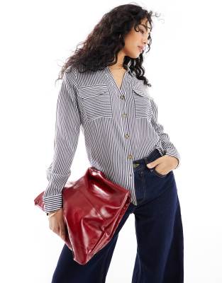 Επισκέψου το κατάστημα Asos για να δεις περισσότερες λεπτομέρειες και φωτογραφίες για το Vero Moda pocket front shirt in navy stripe-White. Για αγορά του Vero Moda pocket front shirt in navy stripe-White πρέπει να επισκεφτείς το κατάστημα Asos.