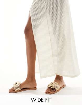 Shoes by ASOS DESIGN Wide Fit Your summer solemates Wide strap Knot detail Peep toe Flat sole Wide fit