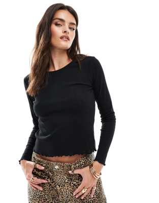 Επισκέψου το κατάστημα Asos για να δεις περισσότερες λεπτομέρειες και φωτογραφίες για το ONLY long sleeve lettuce hem top with pointelle in black. Για αγορά του ONLY long sleeve lettuce hem top with pointelle in black πρέπει να επισκεφτείς το κατάστημα Asos.