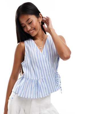 Tops by ASOS DESIGN Wear on repeat Stripe design Wrap front Sleeveless style Tie front Peplum hem Regular fit