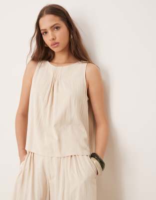 Co-ords by ASOS DESIGN Part of a co-ord set Trousers sold separately Round neck Sleeveless style Pleat details Button-keyhole back fastening Regular fit