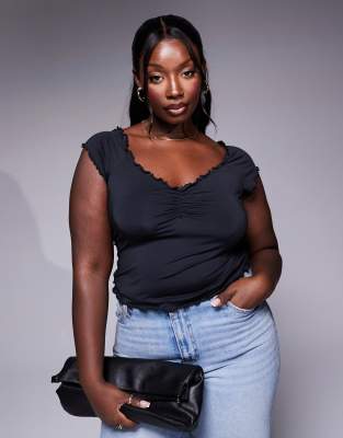 Tops by ASOS Curve For your 'jeans and a nice top' dress code V-neck Cap sleeves Ruched bust Lettuce-edge trims Cropped length Slim fit