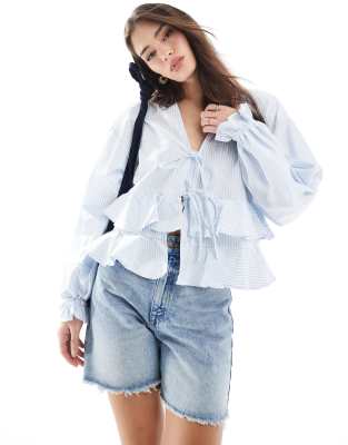 Tops by ASOS DESIGN Wear on repeat Stripe design V-neck Tie front Long sleeves Ruffle hem Regular fit