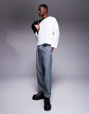 Trousers & Chinos by ASOS DESIGN Pinstripe design Regular rise Belt loops Concealed fly Functional pockets Regular tapered fit