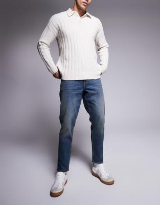 Jeans by ASOS DESIGN Introducing: the perfect pair Regular tapered fit Regular rise Belt loops Concealed fly Five pockets