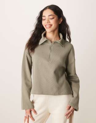 Hoodies & Sweatshirts by ASOS DESIGN Waffle-textured finish High neck Partial zip fastening Drop shoulders Relaxed fit