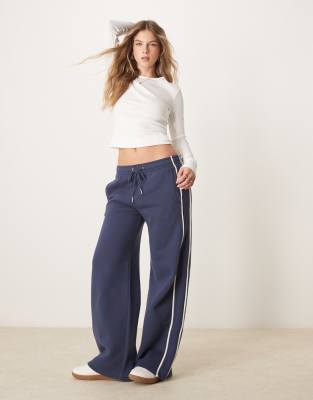 Joggers by Abercrombie & Fitch Mid rise Elasticated drawstring waist Functional pockets Contrast piping Wide leg