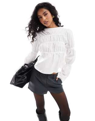 Tops by ASOS DESIGN Date-night worthy Round neck Long sleeves Gathered details Button-keyhole back Regular fit