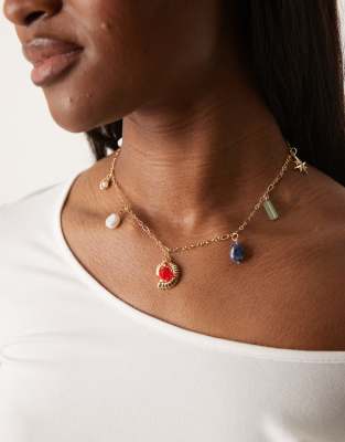 Accessories by DesignB London Exclusive to ASOS Fine chain Shell and faux-stone charms Adjustable length Lobster clasp