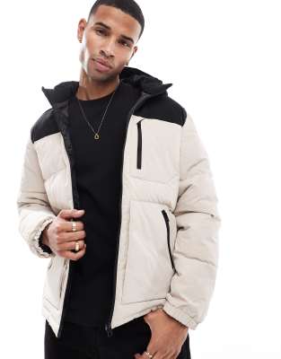 Επισκέψου το κατάστημα Asos για να δεις περισσότερες λεπτομέρειες και φωτογραφίες για το Jack & Jones colourblock puffer jacket in beige & black. Για αγορά του Jack & Jones colourblock puffer jacket in beige & black πρέπει να επισκεφτείς το κατάστημα Asos.