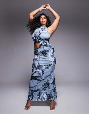 Dresses by ASOS Curve From one occasion to another High neck Tie fastening Sleeveless style Cut-out waist Regular fit