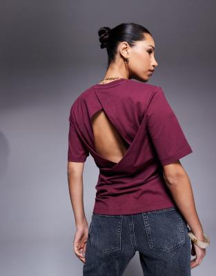Tops by ASOS DESIGN Crew neck Short sleeves Fitted waist Open back Regular fit