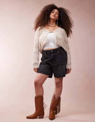 Shorts by ASOS Curve High rise Belt loops Concealed fly Five pockets Dad fit