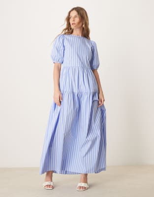 Dresses by Glamorous +100 style points Stripe design Round neck Puff sleeves Tie-back fastening Regular fit