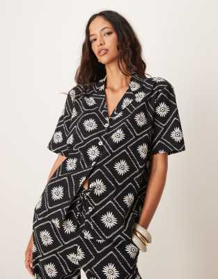 Επισκέψου το κατάστημα Asos για να δεις περισσότερες λεπτομέρειες και φωτογραφίες για το Iisla & Bird tile print short sleeve beach shirt co-ord in black and white-Multi. Για αγορά του Iisla & Bird tile print short sleeve beach shirt co-ord in black and white-Multi πρέπει να επισκεφτείς το κατάστημα Asos.