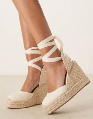 Shoes by ASOS DESIGN Wide Fit Tie-leg fastening Almond toe Platform sole High wedge heel Wide fit