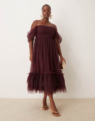 Dresses by Lace & Beads Plus From one occasion to another Off-shoulder style Draped sleeve detail Corset front Fitted waist Zip-back fastening Tiered hem Regular fit