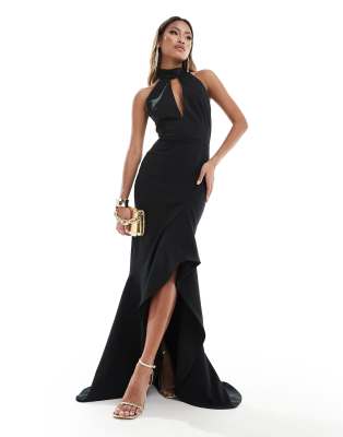 Dresses by True Violet Best dressed: secured Halterneck style Keyhole front Fitted waist Frill trim Zip-back fastening Front split Regular fit