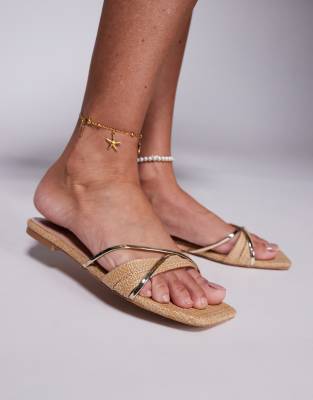 Shoes by Simmi Wide Fit Slip-on style Metallic straps Open toe Flat sole Wide fit