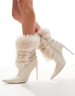 Shoes by Public Desire Double-tap worthy Zip-side fastening Fur trims Lace-up detail Pointed toe High point heel