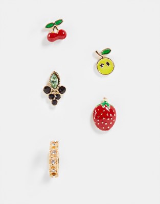 Earrings multipack by Monki We're suckers for details Pack of five pairs Fruit designs Stud and hoop styles Diamante embellishment Secure fastenings Product is non-returnable for hygiene reasons